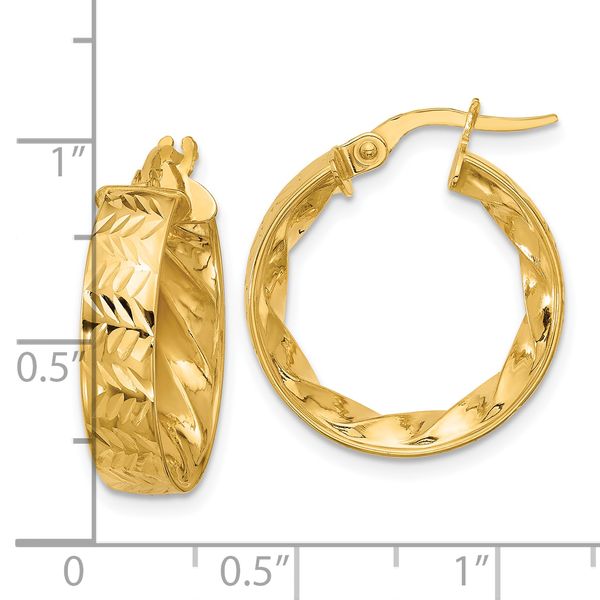 Leslie's 14k Polished and D/C Hoop Earrings Image 4 Johnson Jewellers Lindsay, ON