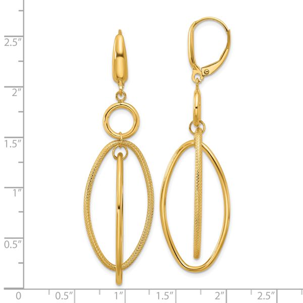 Leslie's 14k Polished and Textured Oval Dangle Leverback Earrings Image 3 Johnson Jewellers Lindsay, ON
