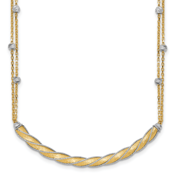 3. Leslie's 14K Two-tone Polished/Satin/Dia-cut Bar w/2in ext. Necklace
